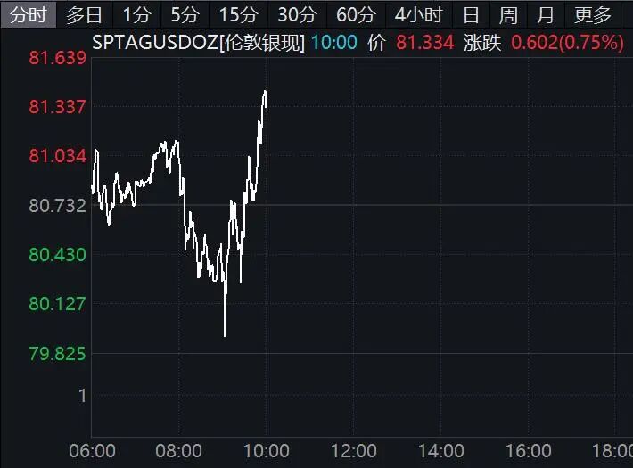 国际金银盘中双双拉升。截至发稿,现货黄金涨近0.5%;现货白银涨近0.8%,此前一度跳水跌近1%